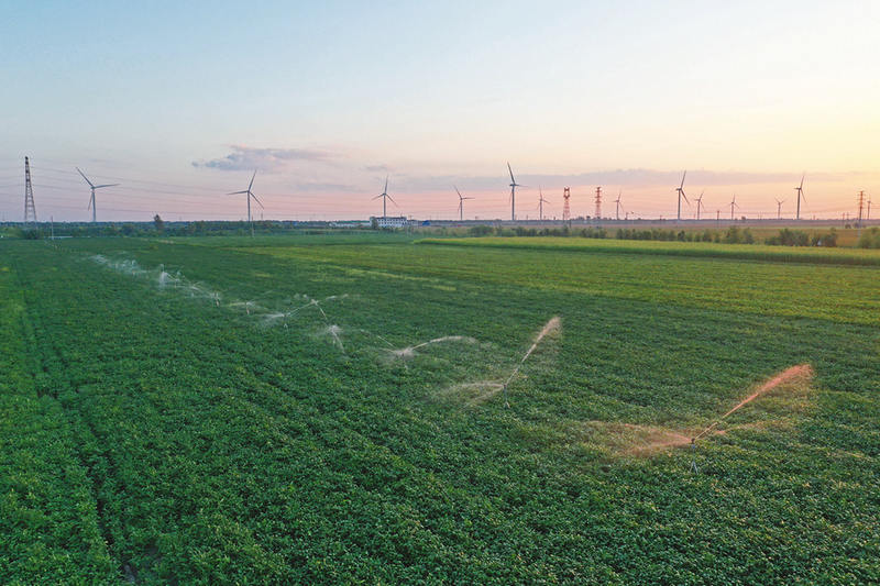 8 月 20 日清晨,位于宿松县的安徽农垦华阳河农场农田里,喷灌机械正在浇灌大豆。入秋以来,天气持续高温干旱,华阳河农场科学调度水源,积极调配抗旱设备、疏通农田沟渠等,全力保障农业生产用水,为秋季粮油增产丰收打基础。通讯员 李龙 摄