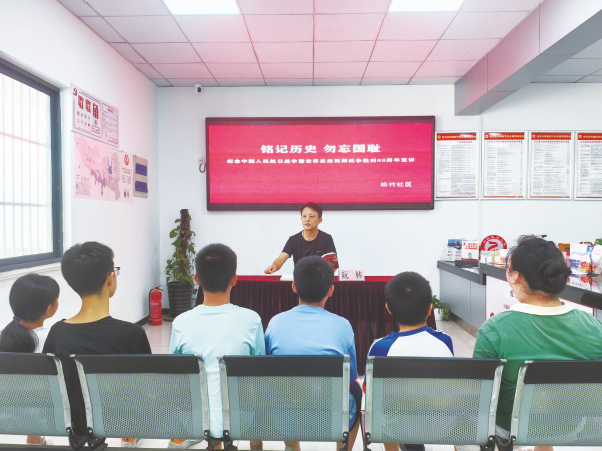 本报讯 为纪念中国人民抗日战争暨世界反法西斯战争胜利80周年,传承红色基因,厚植爱国情怀,近日,合肥市庐阳区杏花村街道松竹社区邀请“五老”志愿者阮林,为社区青少年开展“铭记历史勿忘国耻”主题宣讲活动。
