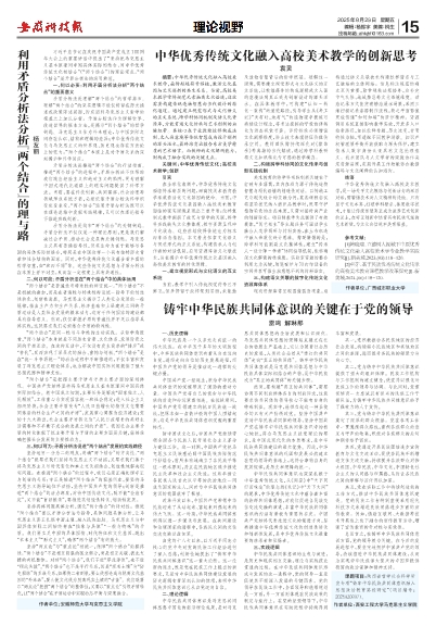 [1]韩晓瑞.立德树人视域下中原优秀传统文化融入高校美术学专业教学实践研究[J].新美域,2025,(05):118-120.