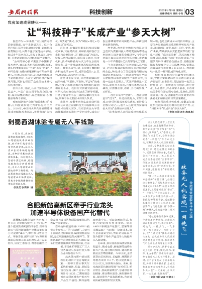 破解科技成果转化难,安徽正加速让科技成果转化为看得见的生产力,让“科技种子”长成产业“参天大树”。
