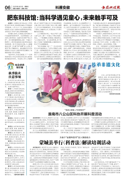 在淮南子文化馆内,研学团队学习了《淮南子》中蕴含的哲学思想与科学观念;通过参观6个专题展区,进一步了解了这部古代典籍对后世科技发展的深远影响。活动特别设置了“典籍中的科学”问答环节,激发青少年对传统文化与现代科学关联性的思考。 (淮柯)