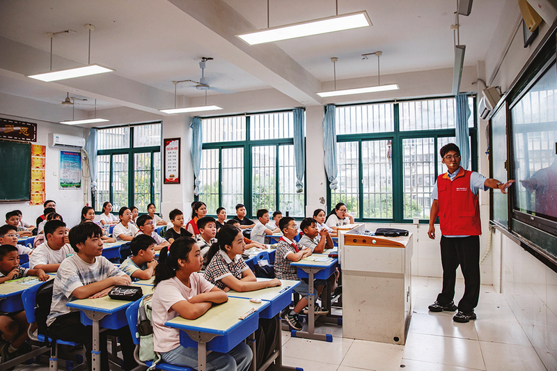 9 月 1日,国网庐江县供电公司组织皖美共产党员服务队走进庐江县三里小学,为学生们讲解用电的小知识。李梁缘 摄