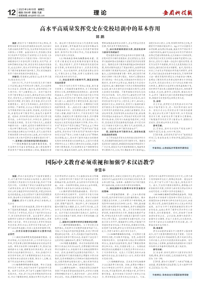 摘要:学术汉语是国际中文教育的重要分支,对于提升学习者的综合运用能力、满足学术交流需求以及促进文化交流等方面,具有不可替代的作用。文章阐述了学术汉语教育在培养学习者学术思维、助力学术研究方面的关键地位,同时分析当前教学中存在的问题,并提出相应的优化改进措施,旨在为国际中文教育的发展提供参考,推动学术汉语教学走向系统化、科学化。