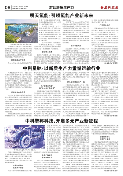 新质生产力的核心在于科技创新。明天氢能始终坚持关键技术自主研发,在氢燃料电池领域实现了从匹配搭载、燃料电池系统、电堆到电堆核心部件的四层级自主可控,是国内唯一实现该技术路径全覆盖的企业。