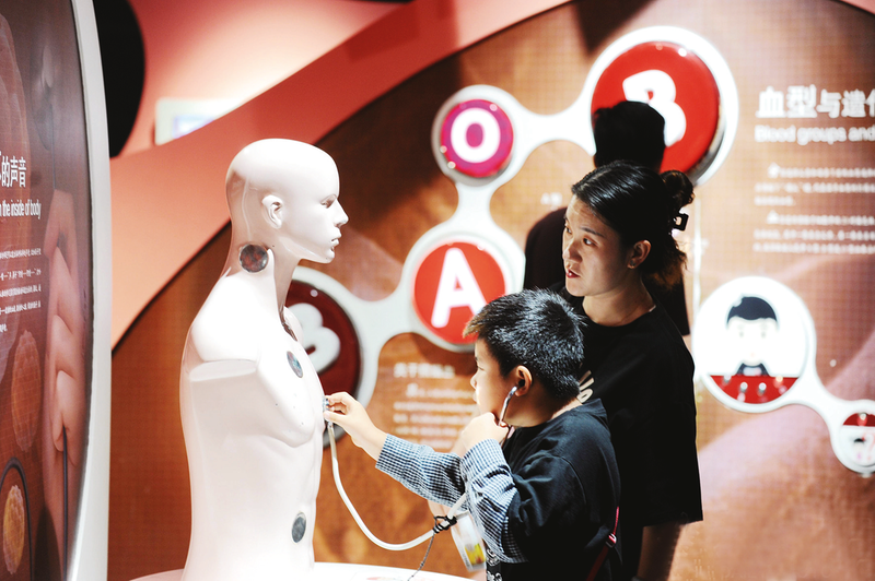 10月7日,在合肥市科技馆黄山路馆区,小朋友们正在体验科普设备。国庆假期,不少家长带着孩子走进科技馆,学习科学知识,感受科技魅力。 熊伟 摄