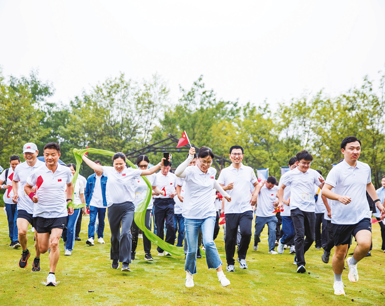9月26日,国网庐江县供电公司组织员工在庐江县万山镇开展“同心筑梦 喜 迎 双节”欢乐彩虹跑活动。