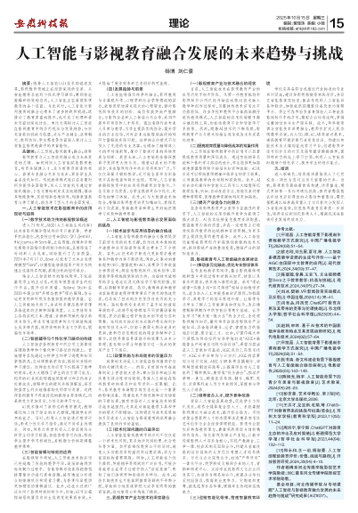 摘要:随着人工智能(AI)技术的迅速发展,影视教育领域正在经历深刻的变革。从智能辅导系统到个性化学习路径,再到智能剪辑和特效的应用,人工智能正在重塑影视教育的各个层面。与此同时,人工智能与影视教育的融合也带来了诸多挑战和机遇,既推动了教育质量的提升,也引发了伦理和技术层面的深刻讨论。本论文将探讨人工智能在影视教育中的应用现状与发展趋势,分析其面临的挑战与机遇,并从产业融合、政策制定、教师培训、学生需求等方面深入探讨人工智能在影视教育中的多重影响。
