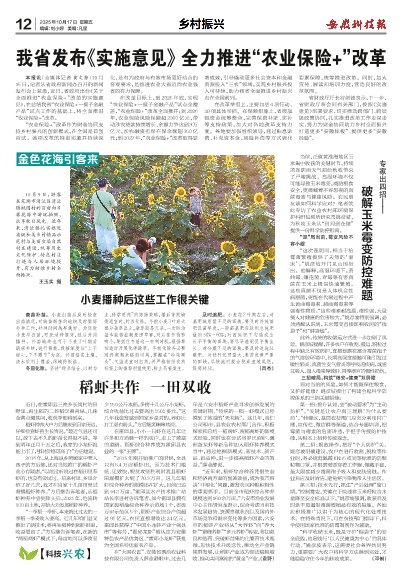冬前化除。坚持“封杀结合、以封为主、科学用药”的防除策略,播后芽前墒情适宜时,封杀化除。冬前小麦3叶后大部分杂草出土,杂草较易灭杀,一次防治基本能够控制麦田草害,对后茬作物影响小,要抓住冬前这一有利时机,根据草相适时开展化学除草。冬前化除务必要避开寒潮来临前用药,掌握在“冷尾暖头”、气温适宜时打药,并严格按照农药标签上的推荐剂量使用,防止药害发生。