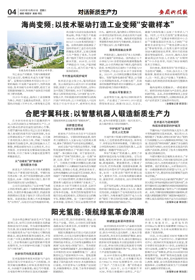 据阳光氢能科技有限公司副总裁罗宣国介绍,公司充分发挥安徽光伏装机全国领先的禀赋优势,结合母公司阳光电源深厚的技术积淀,大力研发电解槽技术并落地“光伏/风电+制氢”项目。在合肥新能源产业集群的赋能下,阳光氢能建成了全球领先的3GW电解槽智能工厂,通过数智化生产使效率跃升60%。借助安徽省氢能规划及合肥市电价补贴政策,公司建成了国内最大的30MW水电解制氢实证基地,并深度参与六安氢能产业园建设,积极探索电力、交通、工业等多领域的脱碳路径。