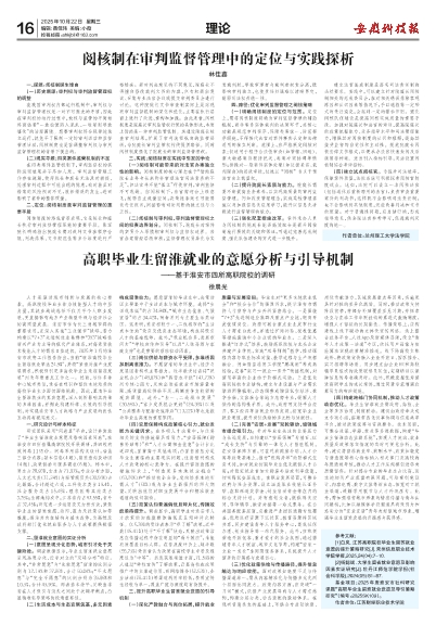 [2]杨懿斌.大学生留省就业意愿及影响因素实证研究[J].牡丹江师范学院学报(社会科学版),2024(05):81-87.基金项目:2025年度淮安市社科研究课题“高职毕业生留淮就业意愿及导引策略研究”(编号:2025SK109)。