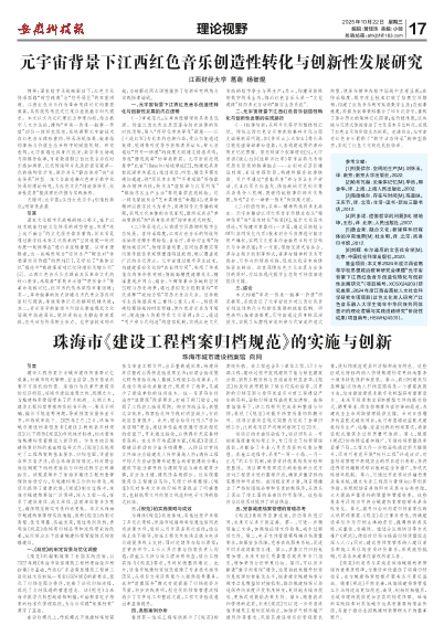 建设工程档案作为城市建设的重要记忆载体,对城市规划管理、安全监督、历史传承有着不可替代的价值。珠海作为改革开放前沿的经济特区,其城市建设速度之快、规模之大,为城建档案管理带来了巨大挑战。长期以来,建设工程档案管理存在标准不统一、要求不明确、操作不规范等问题,导致档案质量参差不齐,归档效率低下。2025年2月12日,珠海市城市建设档案馆发布《建设工程档案归档规范》(以下简称《规范》)市级地方标准,标志着珠海城建档案管理迈入新阶段。作为本地区城建档案归档的基础性指导文件,《规范》系统规定了工程档案的基本要求、归档范围、质量标准和立卷方法,结合珠海实际情况,针对联合验收制度下的档案验收与归档流程作出明确指引。该规范填补了珠海市建设工程档案管理的标准空白,为城建档案工作的标准化、规范化提供了重要依据。《规范》制定过程中,珠海市城建档案馆广泛调研,深入工程一线,征求了建设单位、施工单位、监理单位等多方意见,确保规范的实用性和适用性。本文从珠海市城建档案管理实践角度,剖析《规范》的制定背景、优化调整、实施成果,通过案例剖析,表明该《规范》给档案归档品质和流程带来的改善,从而给出关于改善城建档案管理体系的前瞻建议。