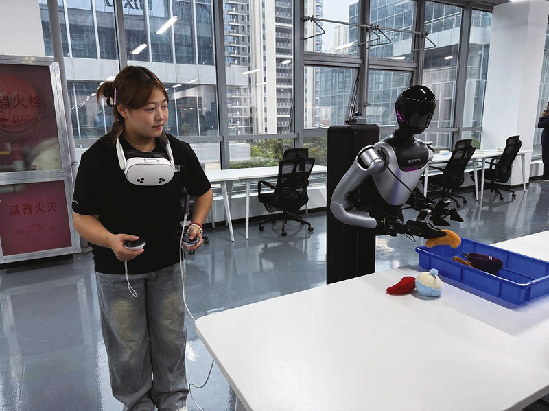 10月13日,“牢记嘱托感恩奋进——安徽往前赶”集中采访团走进合肥市零次方机器人有限公司。在这里,采访团一行亲身感受了科技创新的澎湃动能,一个能精准分拣、自动清洁的机器人“族群”,让未来变得触手可及。它们正将智能从虚拟代码转化为实体服务,深刻诠释着“赋能生活”的具身智慧。这一幕,也让安徽在科技创新浪潮中“往前赶”的步伐,变得更加坚实与清晰。图为工作人员对机器人进行遥控操作,采集数据。 全媒体记者 韩如意 摄