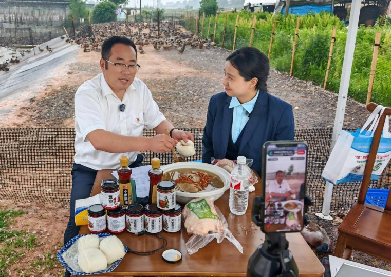 灵璧县禅堂镇河北村驻村工作队开展电商直播。
