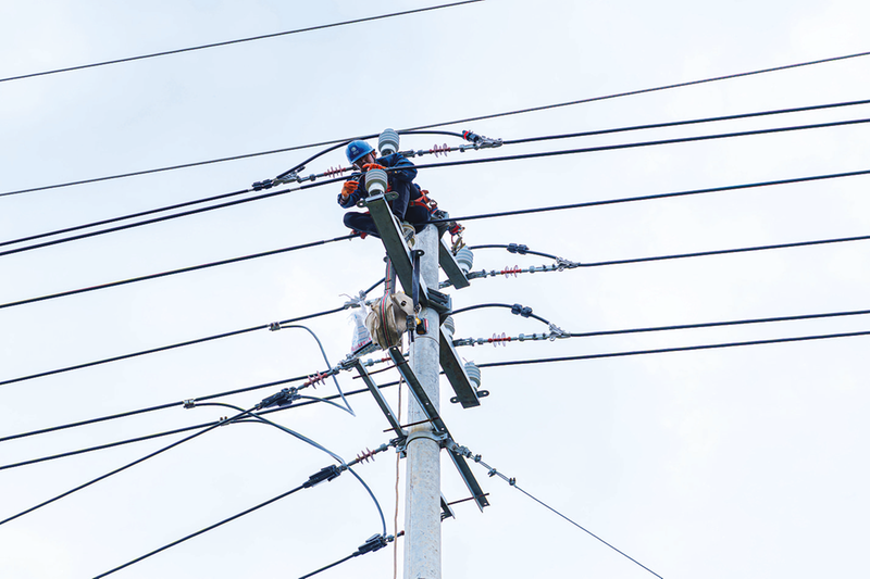 10月20日,国网庐江县供电公司组织专业人员在110千伏江山变10千伏小屯161线路进行防雷式绝缘子更换工作。李梁缘 张雨婷 摄