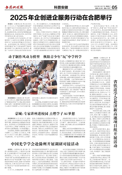 本报讯 (全媒体记者 韩如意 黄文静) 11月4日,以“绿色能源 创新发展”为主题的“2025年企创进企服务行动”在合肥举行。来自相关省级学会、高校科协,各省辖市科协,省内外新型储能及新能源相关企业、活动承办单位、执行单位的代表等200多人参与活动。