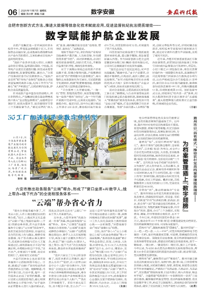 科技发展为纪检监察工作高质量发展带来新机遇,通过数字赋能,将监督更好融入治理。作为国家创新示范企业的安徽安科生物工程(集团)股份有限公司,公司执行总裁姚建平对此深有感触。