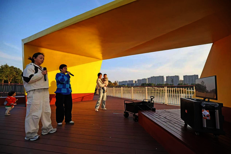 11月11日,芜湖市鸠江区大阳垾湿地公园内,市民在栈桥上放声歌唱。近年来,芜湖市坚定不移践行“绿水青山就是金山银山”理念,以建设生态宜居城市为目标,持续推进水系治理与湿地保护修复。大阳垾湿地公园水清岸绿、鸟语花香,宛如“城市绿肺”。这些精心营造、触手可及的绿色空间,让人民群众在绿水青山间切实增强了获得感与幸福感,生动展现了芜湖生态文明建设的丰硕成果。