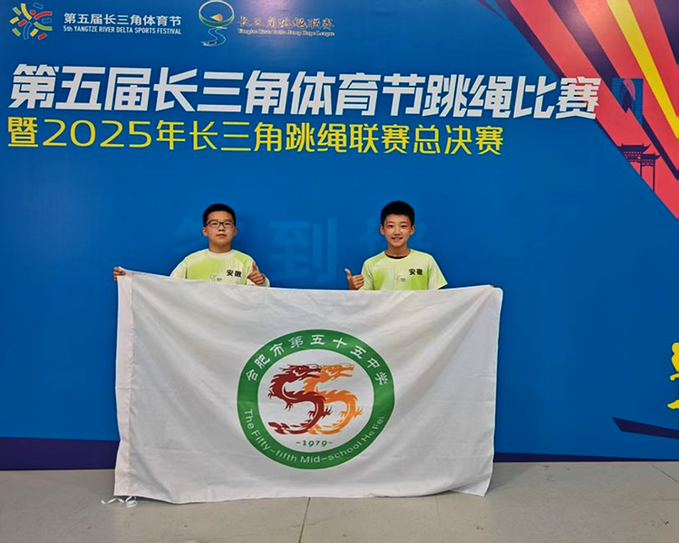 近日,合肥市第五十五中学东校跳绳队连创佳绩,在2025年长三角跳绳联赛总决赛中夺得2金2银1铜,随后在安徽省青少年跳绳精英赛中再获3金1铜,累计收获5金2银2铜。优异成绩的取得,得益于马中一、谢松等老师组成的教练团队科学系统的训练,也体现了学校坚持“五育并举”、积极开展阳光体育活动的育人成效。学子们在跳绳中锻炼体魄、锤炼意志,展现出蓬勃向上的青春风采。 (文/图童宗权)