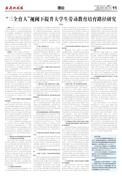 “三全育人”视阈下提升大学生劳动教育培育路径研究
