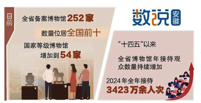 “十四五”时期,全省博物馆坚持守正创新,优化博物馆布局体系,深入挖掘文物资源,深度阐释安徽地域文化内涵,创新展览教育模式,加快跨界发展步伐,全省博物馆事业创新发展的步伐更加坚实。
