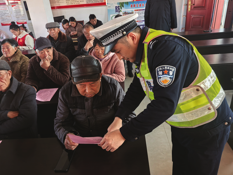 为提升国省沿线老年人的交通安全意识,有效预防和减少道路交通事故的发生,11月25日,宿州市泗县交警走进县屏山镇屏北村村部,专门为60余名老人的出行安全开设了交通安全大讲堂。 刘永 摄