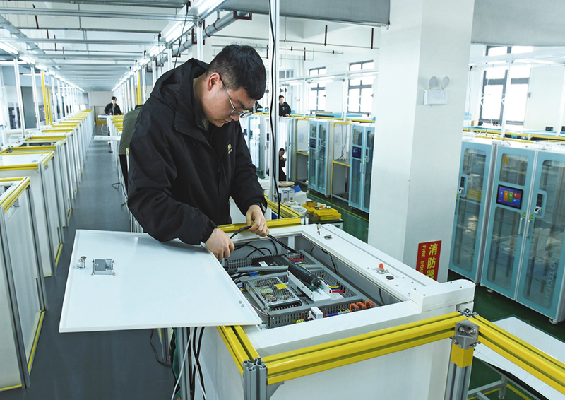 近日,在淮南市高新区的安徽米度智能科技有限公司,智能化生产线正加班加点生产智慧医疗产品。该企业与4家高校及科研机构建立产学研合作,组建涵盖软件技术、人工智能、物联网、智能终端等多领域研发团队,先后推出创新产品26项,累计获得知识产权86项,智慧医疗产品覆盖全国200余家医院。 陈彬 摄