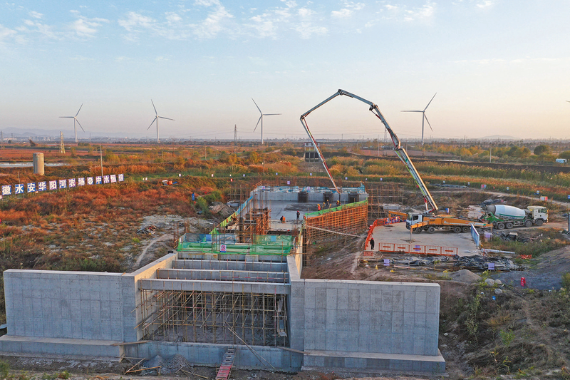 11月29日,位于宿松县的安徽农垦华阳河农场,施工人员对华阳河蓄滞洪区穿堤箱涵进行浇筑。华阳河蓄滞洪区是长江中下游地区的民生工程,纳入国家150项重大水利工程之一,可承担25亿立方米长江蓄洪任务。目前,工程累计完成投资约75.2亿元,占比72%。工程建成后将成为长江流域防洪减灾、保障民生的“安全阀”,助力长江经济带高质量发展。