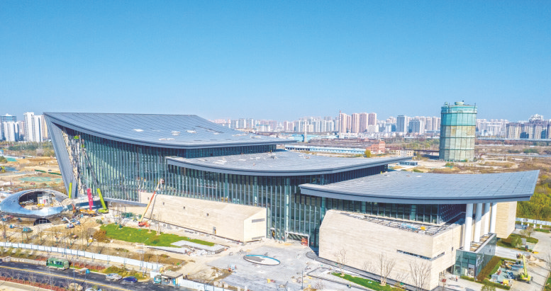 近日,合肥市博物馆主体结构完工,进入幕墙施工和室内装修收尾的关键阶段。合肥市博物馆建成开放后将承担城市历史展示与文化传承的核心功能;打造南淝河畔开放共享的公共文化空间;建设沉浸式、智慧化的互动体验展区(含AR互动等新技术)。 图为2025年11月29日,合肥市博物馆工程建设正酣。 马二虎 摄