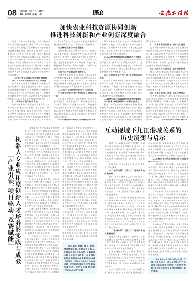 党的二十届四中全会提出,推动科技创新和产业创新深度融合,增强体系化攻关能力。习近平总书记强调,农业科技创新要着力提升创新体系整体效能,解决好各自为战、低水平重复、转化率不高等突出问题。农业科技资源协同创新是激活农业发展内生动力、推进农业现代化的关键抓手。安徽在加强农业科技资源整合、构建协同创新体系方面取得了一定成效,但仍面临多重因素制约,需要进一步强化资源整合力度,释放协同创新效能,促进科技创新和产业创新深度融合,助力乡村振兴和农业强省建设。