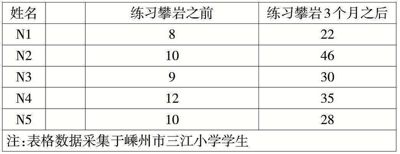 攀岩运动对学生的身体素质要求较高,须具备力量、协调性、耐力和爆发力。在攀岩运动过程中,需持续进行引体向上及翻身动作,且凭借强劲臂力与足部蹬踹力,反复达成此类训练动作。故而,参与攀岩运动务必确保体力充沛,此运动要求攀岩者具备顽强意志与坚韧精神,否则,将前功尽弃,无法达到最终攀岩高度目标。主要策略:一是纳入体育课教学,每周设置一节攀岩课程。通过全员覆盖普及攀岩基础知识和基本技能。二是托管体验,每周晚托课安排一个班级开展攀岩体验,让孩子们有进一步巩固的机会。三是拓展课程学习,编印校本教材,实施校本课程。四是比赛促提高,每学期组织一次校攀岩比赛,以赛促学。