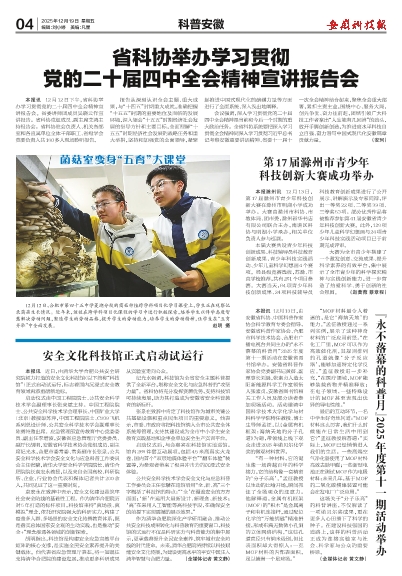 本报讯 12月13日,由安徽省科协、中国科普作家协会科学教育专委会指导,安徽省科普作家协会、合肥市科学技术协会、合肥市广播电视台共同主办的“永不落幕的科普月”2025年度第十一期活动在安徽省图书馆举办。安徽省科普作家协会党委副书记黄蓓、副理事长刘晨,张素贞人造太阳新能源科学工作室领衔人张素贞,安徽省图书馆相关工作人员及部分读者参加现场活动。活动邀请中国科学技术大学化学与材料科学学院特任教授、博士生导师孟征,以《金属有机框架:海纳天地的分子孔道》为题,带领线上线下观众走进2025年诺贝尔化学奖的微观材料世界。