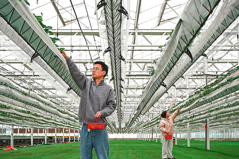 12月12日,在长丰县智慧农业谷数字草莓示范园,技术人员在培育草莓。近年来,长丰县不断提升农业农村数字化管理与服务水平,打造了一批集智能化种植和观光休闲于一体的生态农业综合体,推动智慧农业和乡村旅游融合发展,助力农业增效、农民增收。