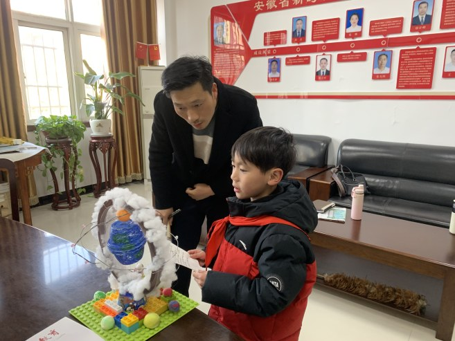 二(六)班李金轩同学向记者讲解并演示了自制悬浮球的原理与制作流程。 在凤山脚下,创建于1957年的萧县师范学校附属小学,历经六十余载积淀,形成了“为人求真,为学求真”的深厚文化底蕴。这所拥有170多名教职工、50个教学班的学校,不仅是多项国家及省市级荣誉的获得者,更在新时代教育命题下,积极思考并践行着小学科技教育的创新之路。面对“科技怎样从娃娃抓起”的时代之问,安徽省新时代宋继昭名校长工作室领衔人,萧县师范学校附属小学党支部书记、校长宋继昭从《关于加强中小学科技教育的意见》中汲取智慧,聚焦“激发好奇心和探知欲”“强化以兴趣为导向的‘做中学’”,以学科融合为核心策略,力图打破壁垒,让科技教育生动起来、立体起来,真正走进孩子的学习与生活,走出了一条独具特色的学科融合科创教育之路。学校将“科技筑梦”融入新学期开端,在“开学第一课”中精心设计互动式科技体验活动,让每一位新生在踏入校园的第一天,就能零距离感受科技魅力,在心田播下探索与创新的种子。