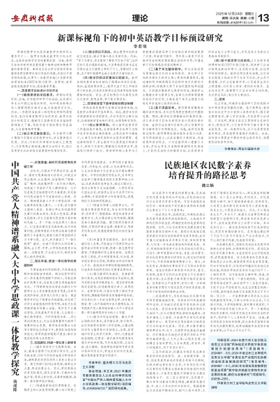 科研项目:2024年度兰州工业学院马克思主义学院“民族地区农民数字素养培育提升的路径思考”(项目编号:2024MY-03);2024年度兰州工业学院马克思主义学院“甘肃农业产业现代化助推县域经济发展路径研究”(项目编号:2024MY-01);2025年甘肃省高校教师创新基金项目“数字技术赋能甘肃特色农业发展的机制、路径与政策研究”(项目编号:2025B-236)。