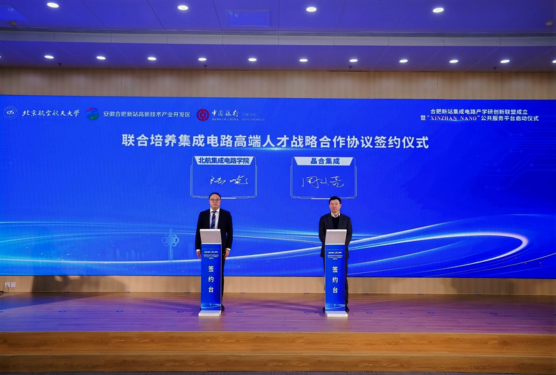 北京航空航天大学集成电路科学与工程学院分别与合肥晶合集成电路股份有限公司签署了集成电路高端人才联合培养战略合作协议,与安徽职业技术大学签署了“职普融通”人才培养合作协议。这两项合作旨在打通从高端研发到技能应用的人才培养通道,构建多层次、贯通式的人才供给体系。