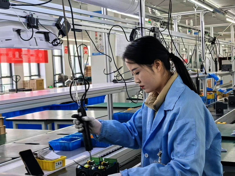 宿州典跃新型建筑材料有限公司生产一线。 在萧县蓬勃的创新生态中,安徽海尚变频技术有限公司是涌现出的优秀代表之一。这家2018年从徐州引进的高新技术企业,专注于工业变频器研发生产,产品发展为八大系列,广泛应用于汽车、新能源等多个行业。其入驻萧县经济开发区后,还成功引进了上游配套企业,促进了园区电子电器新能源产业链的整体发展,生动诠释了科技创新对产业集聚的带动效应。