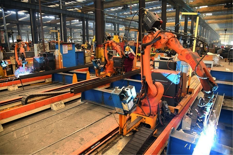 新年伊始,安徽长丰(双凤)经开区众多民营企业开足马力生产,奋力冲刺“开门红”。图为1月2日,长丰(双凤)经开区安徽鸿路钢结构(集团)股份有限公司,工人操控自主创新研发的智能焊接机器人,生产钢结构产品。