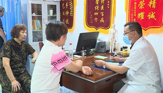 院长王桂平在为病人诊断病情。