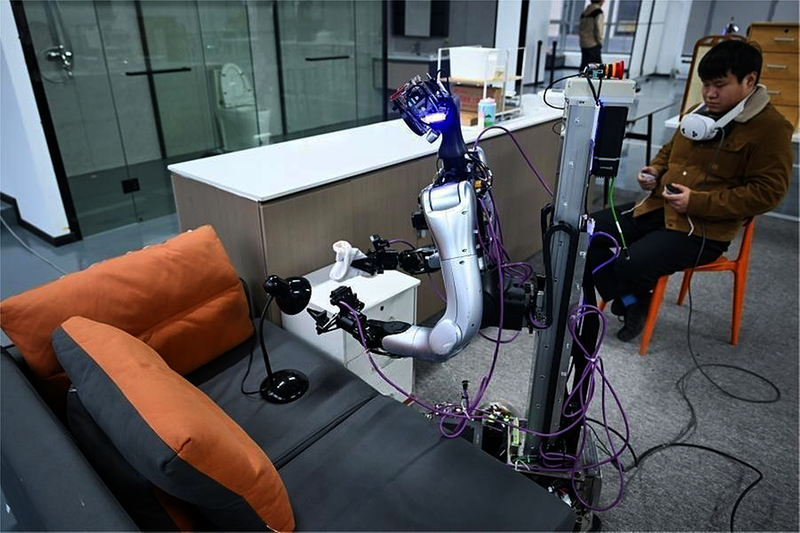 1月4日,在位于紫云山(包河)文化创意产业园——中国视界的零次方机器人数据采集中心,机器人训练师正在训练机器人,进行数据采集。据悉,刚刚成立一年多的零次方机器人,是目前国内实现具身智能量产与商业规模化的首批企业之一。当日是2026年的首个工作日,安徽省各企业开足马力进行研发、生产,力争新年“开门红”。 张大岗 摄