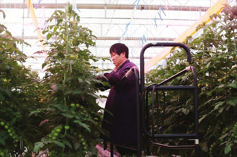 近日,蒙城县兴农绿港数字农业工厂玻璃温室内,工人正在为小番茄进行疏枝管理。目前,该数字工厂利用无土栽培技术种植的小番茄、黄瓜、辣椒等均进入挂果期,工人正在加强管护,及时供应市场。 胡卫国 摄