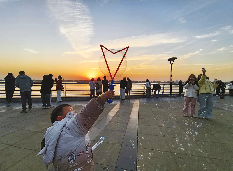 1月11日,安徽芜湖市镜湖区长江畔的滨江公园内,市民游客漫步观景、拍照留念,孩童嬉戏玩耍,人群在绚烂晚霞中尽享假日闲暇。近年来,芜湖市践行“共抓大保护、不搞大开发”理念,将境内201.47公里长江岸线打造为亲水宜人的生态长廊。通过系统推进环境整治与生态修复,将生产岸线逐步转变为生活岸线、景观岸线,不仅守护了一江碧水,更重塑了城市空间。