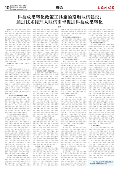 科技成果转化政策工具箱的珞珈队伍建设: 通过技术经理人队伍引育促进科技成果转化