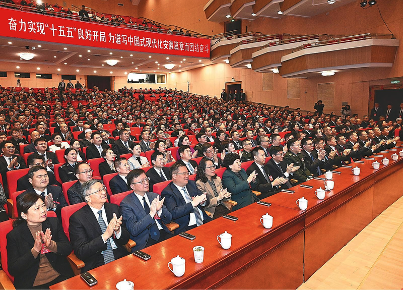 梁言顺强调,新征程上,要坚持以忠诚担使命,矢志不渝紧跟核心奋斗,坚持不懈用习近平新时代中国特色社会主义思想凝心铸魂,坚决落实好党中央赋予安徽的职责使命。要坚持以创新赢未来,坚定不移推动高质量发展,在提升创新策源能力、构建现代化产业体系、深化高水平改革开放、厚植生态文明底色上求突破,续写更多“苟日新、日日新、又日新”的精彩故事。要坚持以初心暖民心,千方百计增进民生福祉,全力守护好万家灯火、美好生活。要坚持以实干出政绩,敢作善为打开发展新天地,让正确政绩观不断深入人心、融入行动、化为自觉。