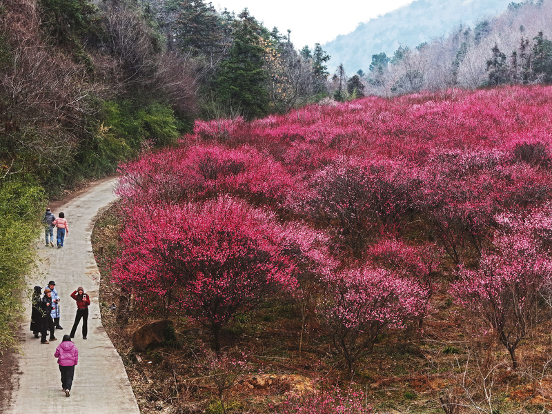 2月5日,芜湖市繁昌区峨山镇城东村梅园内梅花盛开,形成连绵的红色花海,吸引不少游客前来观赏拍照。近年来,城东村以美丽乡村建设为抓手,持续改善人居环境,积极培育特色生态农业与乡村旅游,推动“美丽风景”转化为“美丽经济”。
