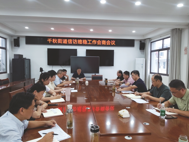 千秋街道召开信访维稳工作会商会。