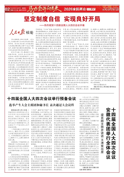 发展全过程人民民主是中国式现代化的本质要求。群策群力、同向同行,凝聚人心,凝聚共识,凝聚智慧,凝聚力量,正是中国式民主的显著优势。人民代表大会制度是实现我国全过程人民民主的重要制度载体。坚持好、完善好、运行好人民代表大会制度,密切联系人民群众、倾听群众呼声、反映群众意愿,把各方面智慧和力量凝聚起来,动员全国各族人民全面贯彻落实党中央决策部署,扎实做好全年各项工作,定能为“十五五”开好局起好步提供有力支撑。期待广大代表提高政治站位,忠实履行法定职责,讲实话、道实情、出实招,集思广益、凝聚共识、广谋良策,为党和人民履好职、尽好责。