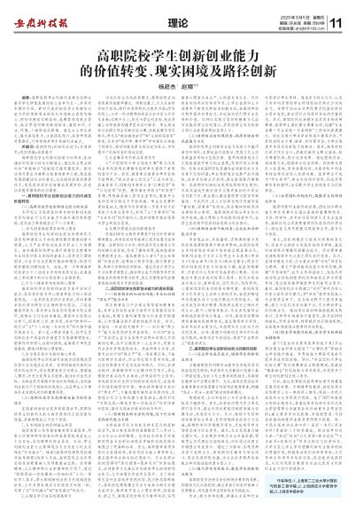 高职院校学生创新创业能力 的价值转变、现实困境及路径创新