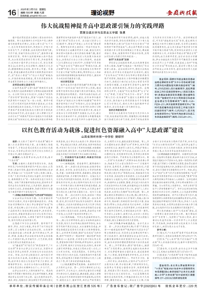 伟大抗战精神提升高中思政课引领力的实践理路