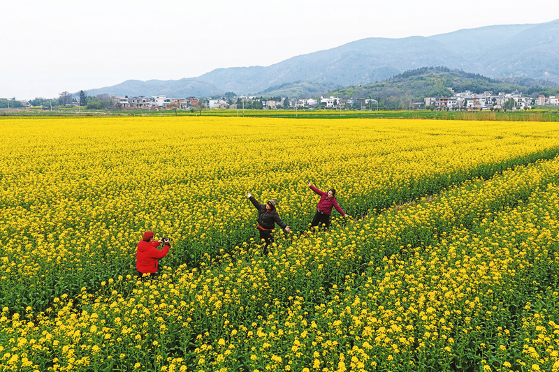 3月4日,芜湖市繁昌区峨山镇城东村,300亩油菜花迎着春日暖阳竞相绽放,宛如在大地上铺展一幅流金溢彩的绚烂画卷。近年来,当地依托优质生态资源,将“花海经济”与乡村旅游深度融合,既美化了乡村人居环境,也吸引众多游客前来踏青赏花,体验农旅融合的独特魅力,推动“美丽生态”转化为“美丽经济”,为乡村振兴注入勃勃生机。