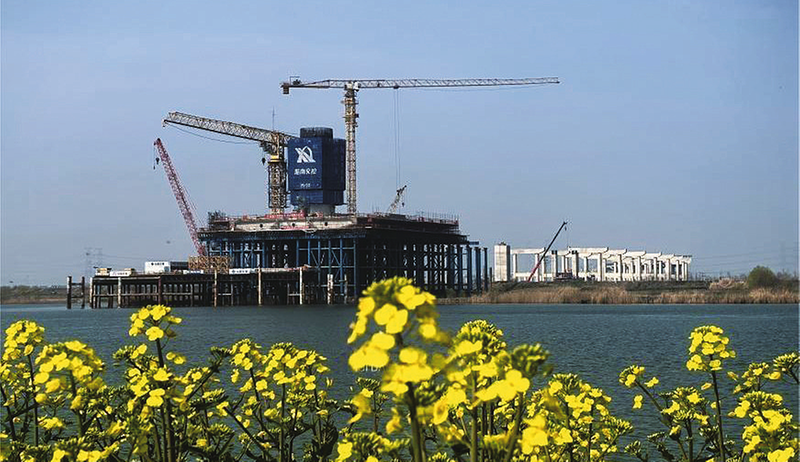3月14日,安徽淮南淮河大桥工程建设施工现场,施工人员正抢抓晴好天气,围绕节点目标,全面推进项目建设。